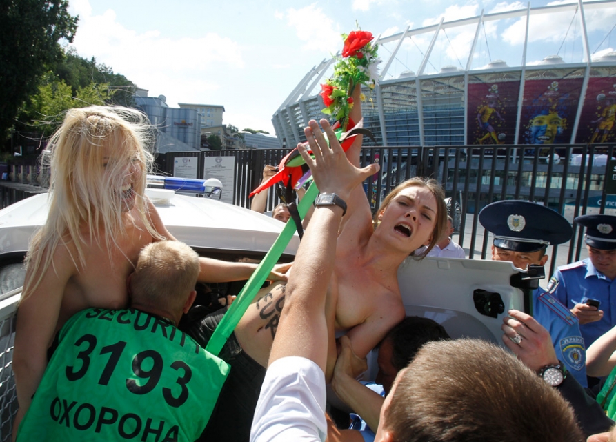 Of course,…I am just being fun. I realize that this political group ‘Femen’, thinks of itself as a legit, and serious group, along with their political beliefs. However, my personal opinion of this group, is that I suspect they have lost a lot of respect to whatever degree of legitimacy that they may have once had, due to their ‘stripping down and off of clothes’ more for every little bit of protest – and I feel that by doing that, you lose any and probably ‘all’ respect, and then you only become ‘beautiful half naked’ women to ‘look at’ and perhaps ‘admire’ or feel negative about; depending on what your own personal beliefs are pertaining to this way of protest – in the end, I feel their way of ‘protesting’ is meaningless.